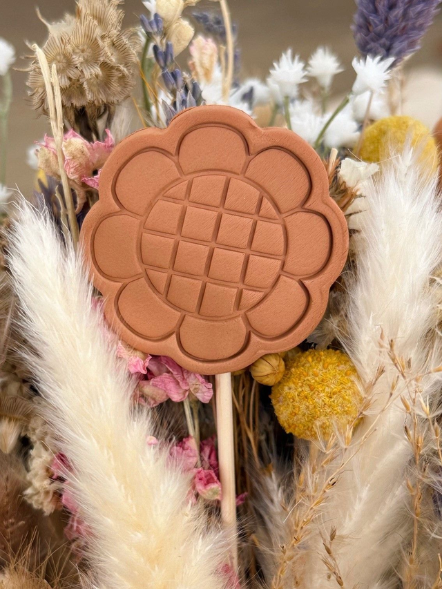 "Belle tige" Fleur en argile & tige en bois