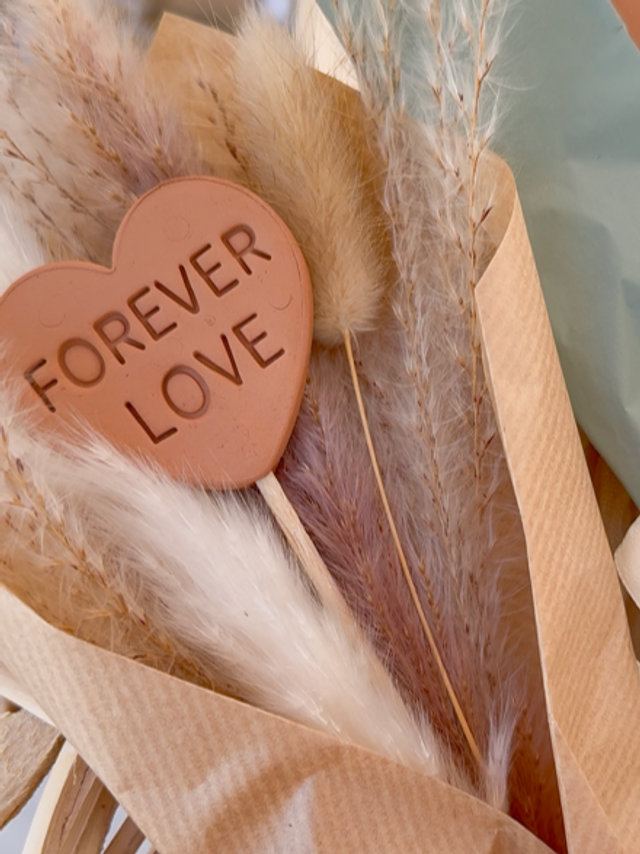 "Bouquet Eternel" fleurs séchées et cœur en argile sur tige