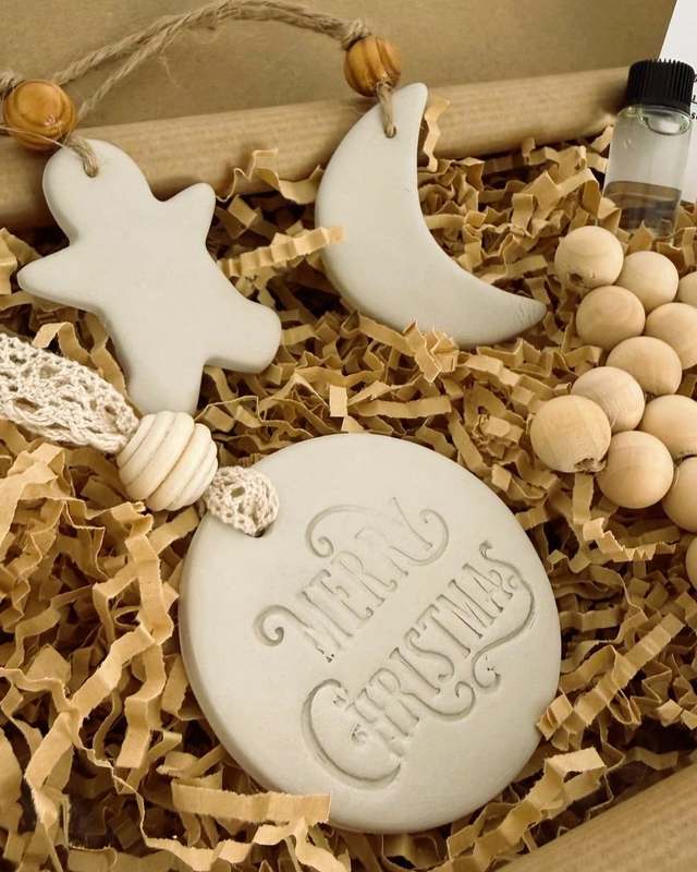 💛 Existe également la « Collection Blanche » (étoile, sapin, moufle et médaillon rond "Merry Christmas" en argile blanche)