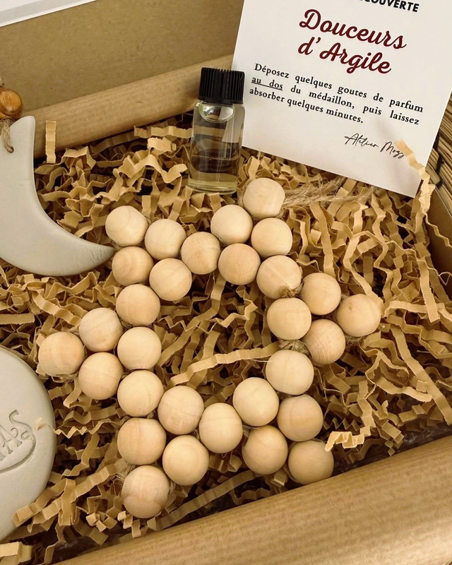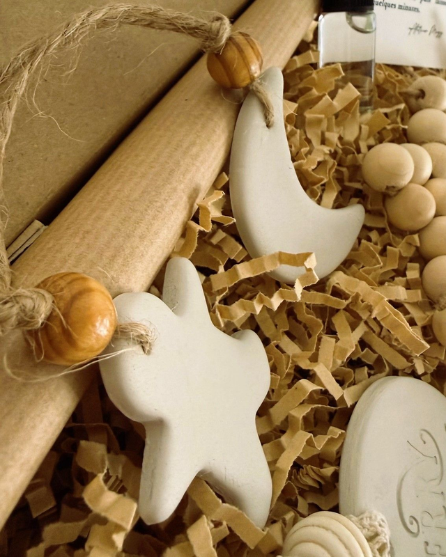 Utilisation : Les décorations en argile sont poreuses, ce qui leur permet de diffuser délicatement les senteurs. Il suffit de déposer quelques gouttes de parfum ou d’huile essentielle au dos pour en faire un diffuseur naturel.