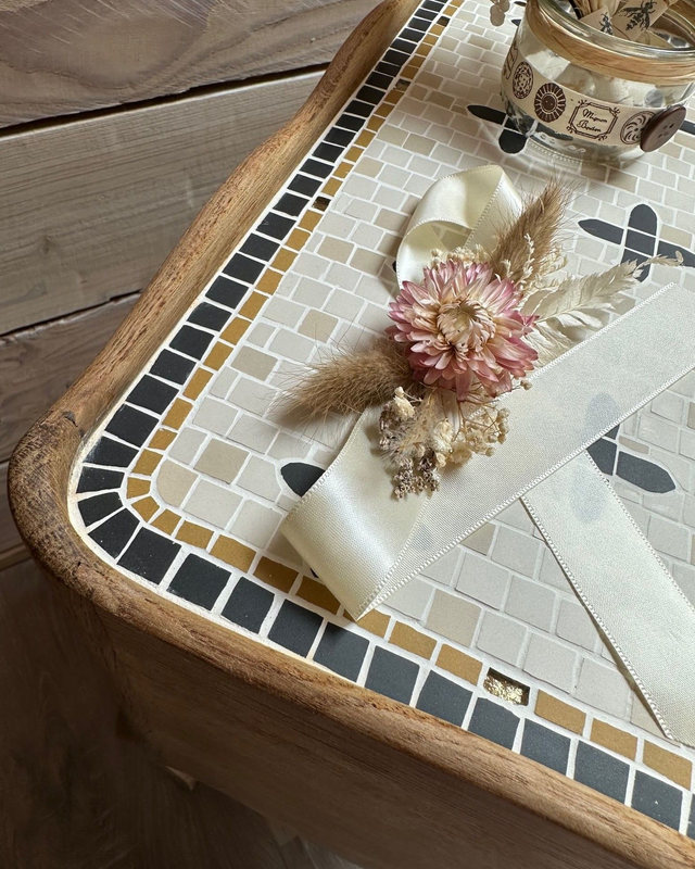 La mosaïque est résistante à la chaleur et parfaite pour y poser votre tasse de thé chaud par exemple ! Sa surface peut être nettoyée avec une éponge humide.