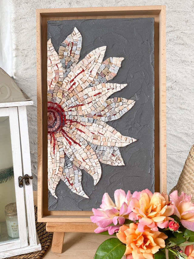 Tableau FLEUR ETERNELLE, mosaïque de marbre & smalti